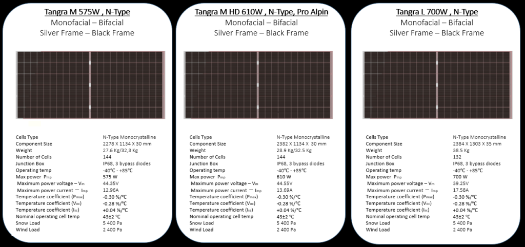 Sunova Solar Tangra är en av de bästa solpaneler som finns på världsmarknaden. Sunova Solar erbjuder en bred portfölj av högeffektiva monokristallina Tier 1 solpaneler bestående av N-typ TOPCon-celler.